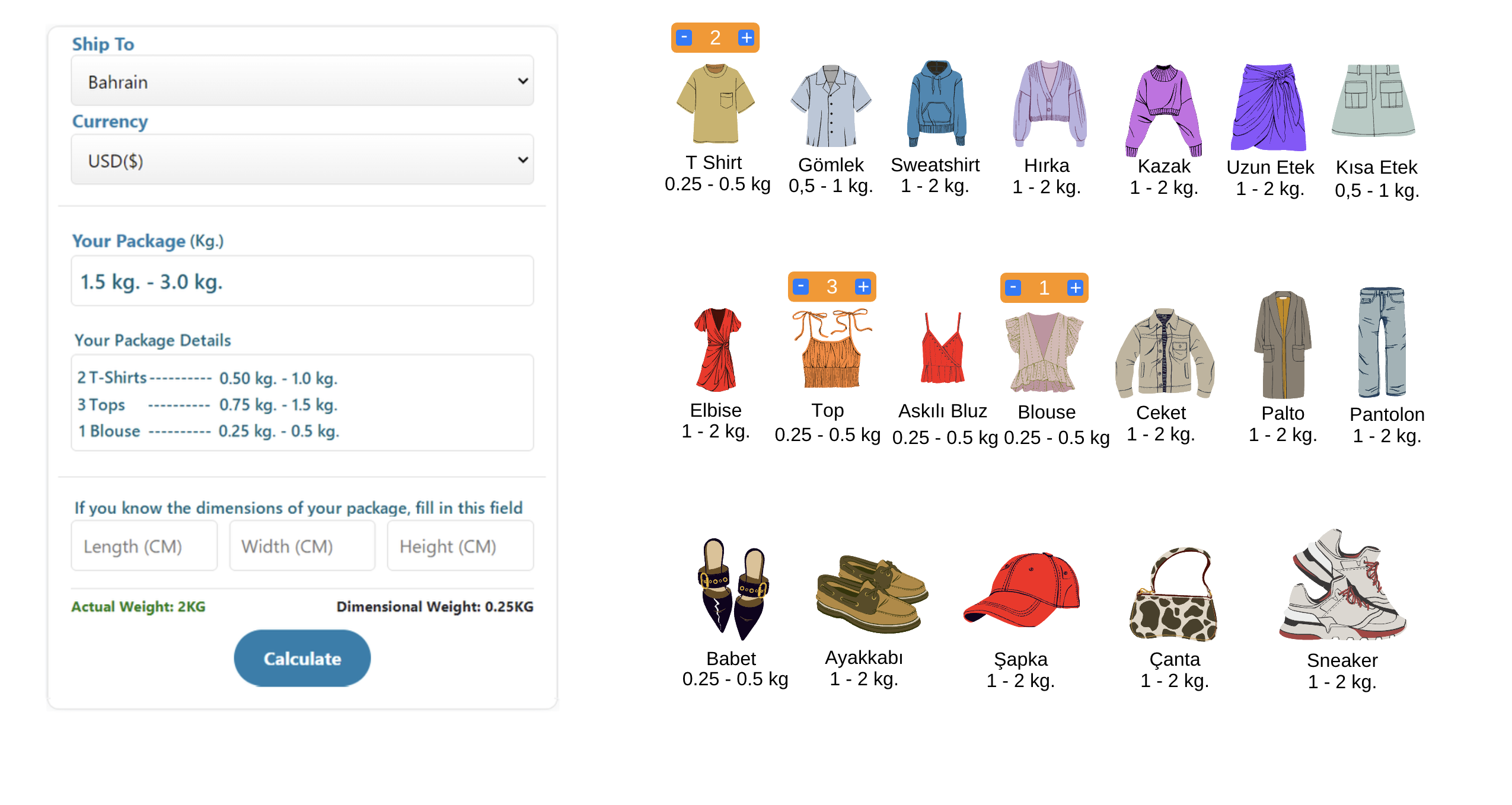 Enter the weight in the calculator or choose products to get estimated shipping price.